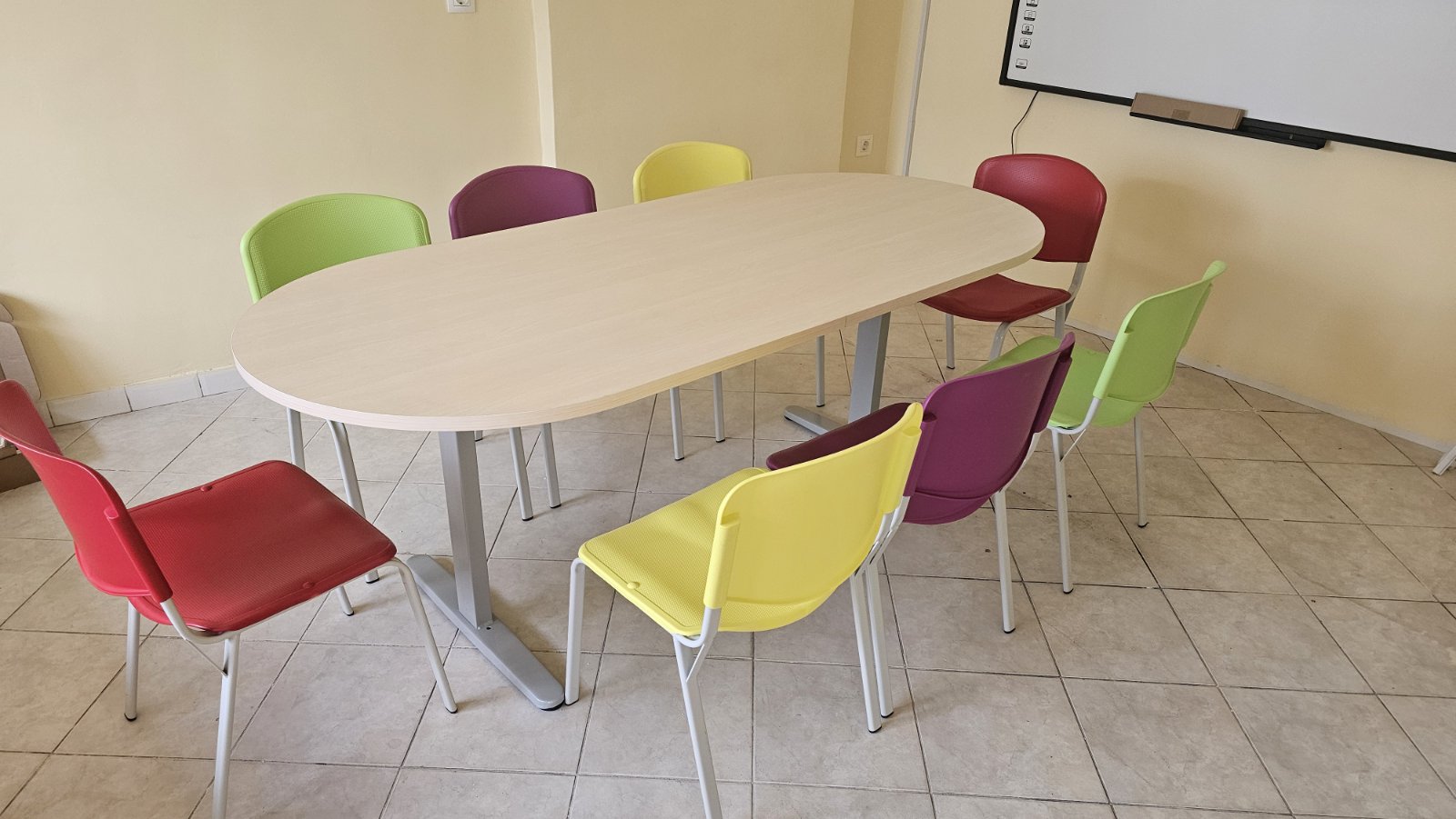 Τα Έδρανα ολιγομελών τμημάτων, ή τράπεζες φροντιστηρίων, κατασκευάζονται από μεταλλική βάση ηλεκτροστατικής βαφής με ποδαρικά σχήματος ανάποδου Τ και συγκολλούνται μεταξύ τους με 2 τραβέρσες για μεγαλύτερη σταθερότητα.