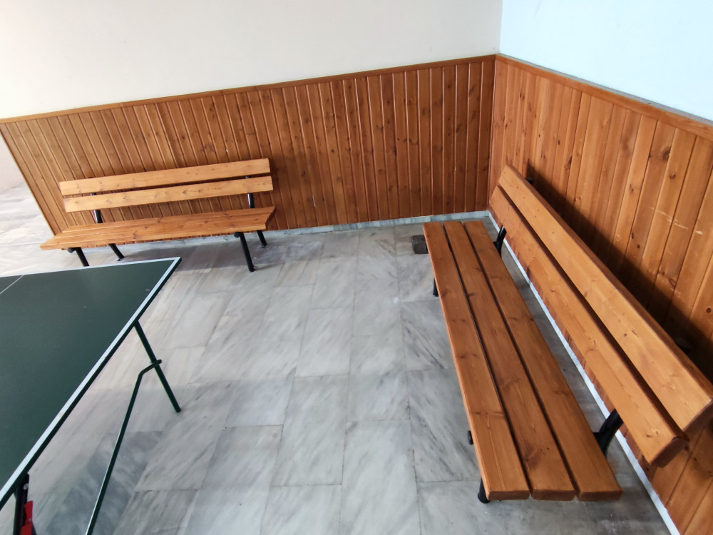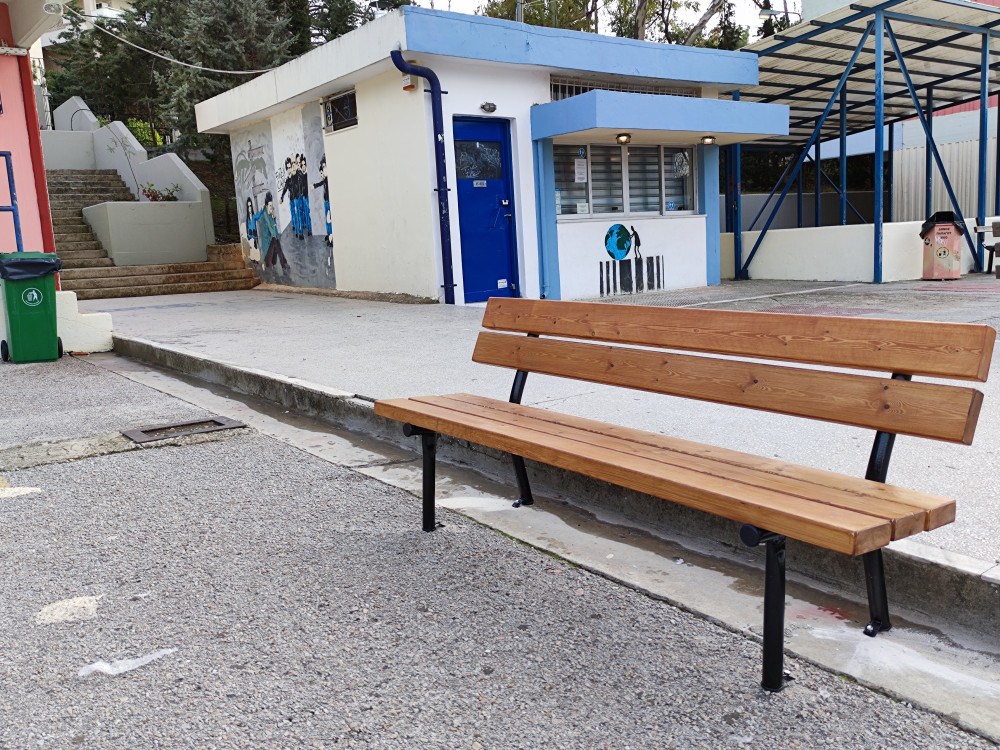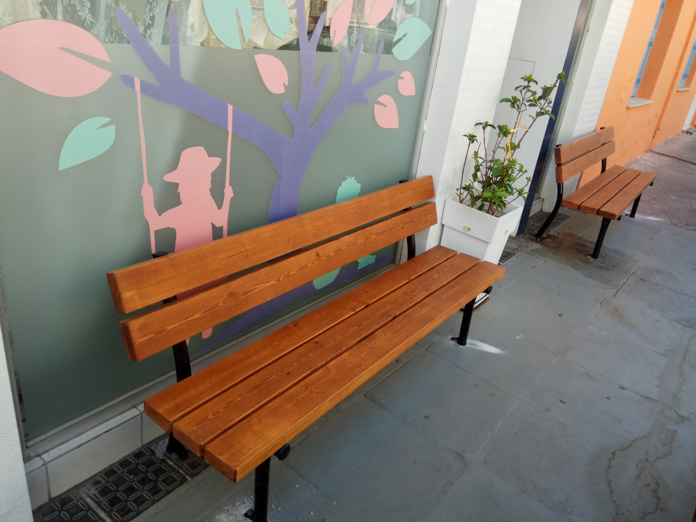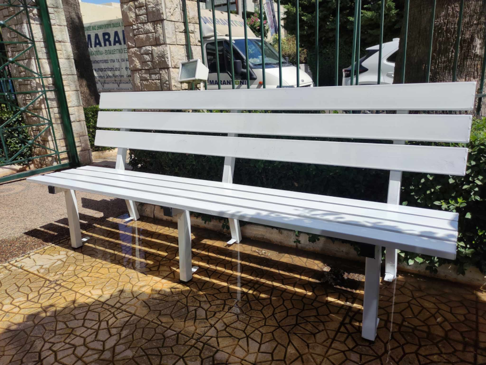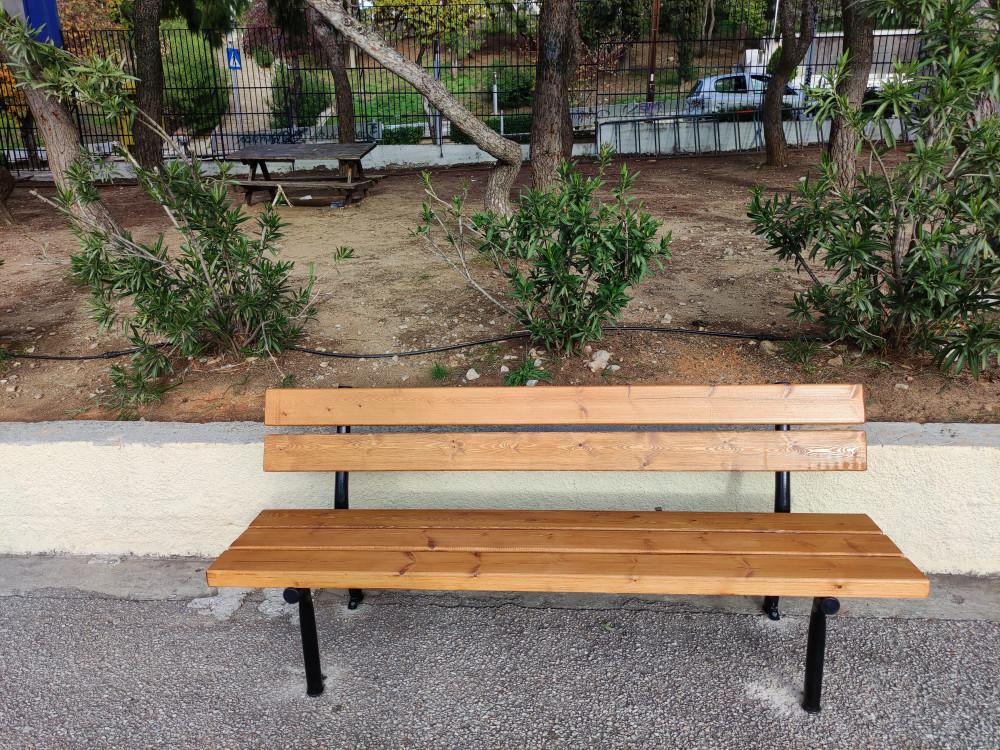 Στην έδρα και στην πλάτη τοποθετούνται συνολικά 5 σανίδες 80Χ40 λουστραρισμένες, ώστε να αντέχουν στις εξωτερικές συνθήκες.