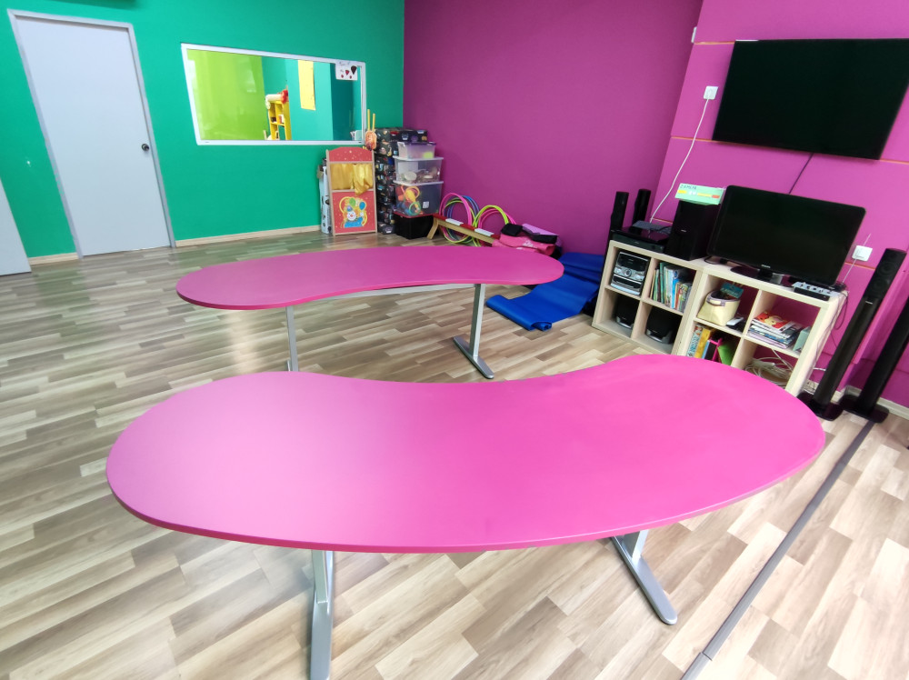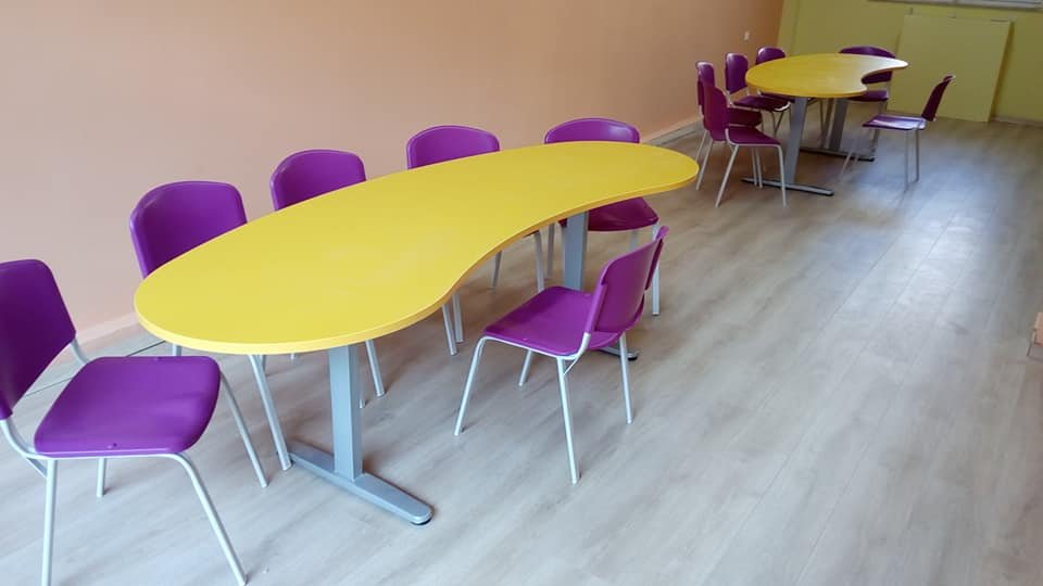 Τα Έδρανα ολιγομελών τμημάτων, ή τράπεζες φροντιστηρίων, κατασκευάζονται από μεταλλική βάση ηλεκτροστατικής βαφής με ποδαρικά σχήματος ανάποδου Τ και συγκολλούνται μεταξύ τους με 2 τραβέρσες για μεγαλύτερη σταθερότητα.
